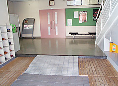 入口へはスロープがあります。 車椅子用駐車場から入口まで段差はありません。